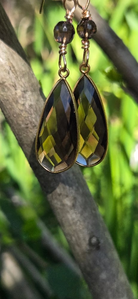 These Smoky Teardrop earrings are an elegant addition to any outfit. They are comprised of two gorgeous deep Smoky Quartz teardrops that are long and slim. They hang on gold filled ear wires. They fall in a 2 inch drop and will surely become a wardrobe staple.